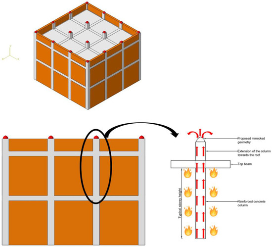Representation of a biomimicked concept over the reinforced concrete column in a typical prototype building.