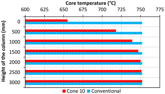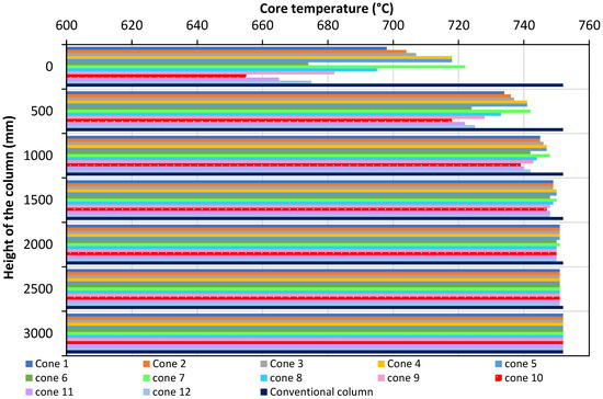 Comparison of the core temperatures with respect to height for the columns.