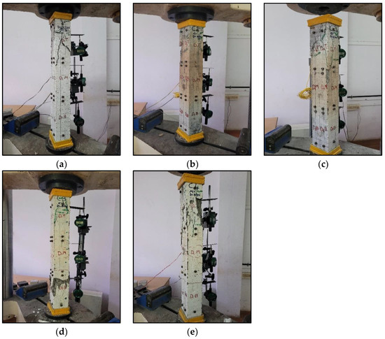 Many researchers have been concerned about the fire performance of reinforced concrete columns through various approaches [18,19,20,21,22]. Panwei Du et al. studied the behavior of hybrid fiber-reinforced high performance concrete columns under fire [23]. The test was performed under various load eccentricity conditions, and their structural behavior was observed. The results reveal that as load eccentricity increases, so does mid-height deflection and axial contraction. Zongping Chen et al. evaluated the eccentric compression performance of a reinforced recycled aggregate column at extreme temperatures [24]. The results indicate that the collapse mechanism of the eccentric columns shifted from tension to compression when the temperature or eccentricity ratio rose, whereas the RCA replacement percentage had a minimal effect.