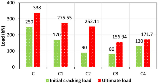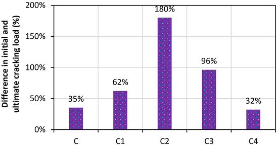 Difference in percentage between the initial and final cracking load of the specimens.