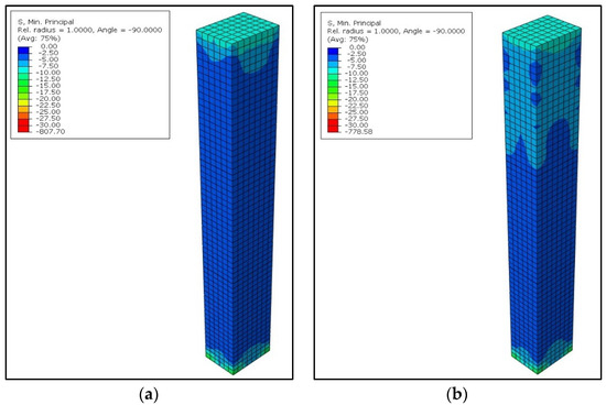 Stress pattern formed along the height of the column (a) C4, (b) C1.