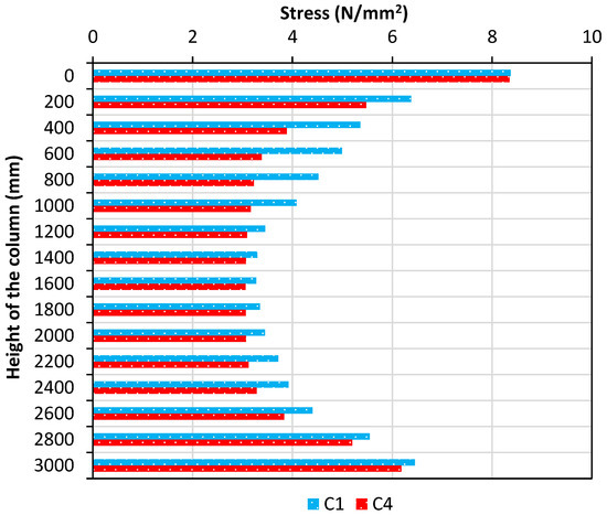 Comparison of stress along the height of the column.