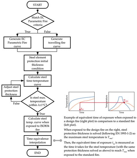 - Stern-Gottfried, J.; Rein, G. Travelling fires for structural design-Part II: Design methodology. Fire Saf. J. 2012, 54, 96–112. [Google Scholar] [CrossRef]