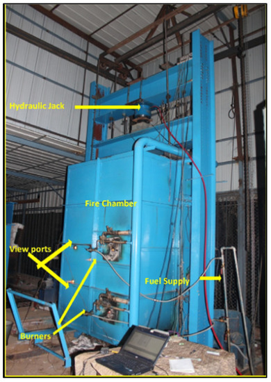 - Indicative Fire Resistance Test Furnace—Fire Testing Technology. Available online: https://www.fire-testing.com/indicative-fire-resistance-test-furnace/ (accessed on 19 January 2022).