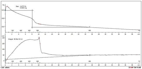 The thermogravimetric analysis was carried out to measure the sample mass loss as the temperature increases under controlled conditions [3,48,49,50], simulating the thermochemical processes dynamic [51,52].