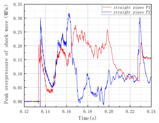 Relationship between shock wave overpressure and time in straight pipes.