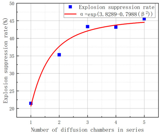 Connection between the number of series explosion chambers and the inhibition rate.