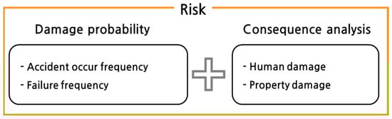 The risk presented in Figure 1 indicates the potential damage probability and the physical and human damage range due to workers’ exposure to toxic and flammable substances. It is utilized based on numerous variables and risk factors that can occur in fire, explosion, and toxic accidents to explain the uncertainty surrounding the occurrence of a specific accident. The FDS used in this study is a result analysis program that effectively simulates fire, explosion, and leakage phenomena based on various modules []. It quantitatively analyzes and evaluates incidents by visualizing and quantifying the extent and severity of human and property damage through the analysis of parameters such as radiative heat intensity, toxic gas concentration and distribution, and heat release rate size, according to accident scenarios [,].