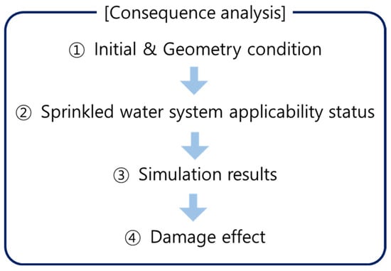 Consequence analysis using FDS focused on the temperature and heat release rate due to the pool fire in the kerosene storage and drain tank, and confirmed the damage mitigation through the sprinkled water system. Figure 2 illustrates the scheme for the consequence analysis.