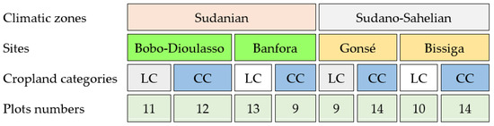 Figure 2. Experimental design showing plot distribution according to climatic zones and cropland categories.