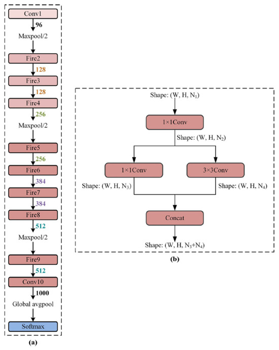 - Iandola, F.N.; Han, S.; Moskewicz, M.W.; Ashraf, K.; Dally, W.J.; Keutzer, K. SqueezeNet: AlexNet-level accuracy with 50x fewer parameters and <0.5 MB model size. arXiv 2016, arXiv:1602.07360. [Google Scholar] [CrossRef]