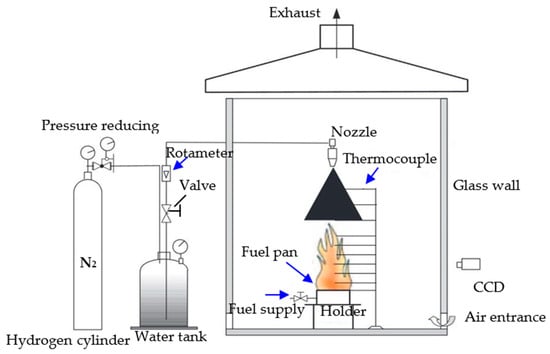 Schematic of liquid pool fire with water mist system additives experimental apparatus [18].