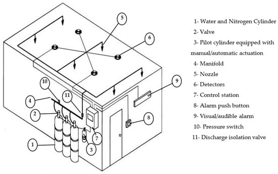 - Mawhinney, J.R.; Back, G.G. Water mist fire suppression systems. In SFPE Handbook of Fire Protection Engineering; Springer: New York, NY, USA, 2016; pp. 1587–1645. [Google Scholar]