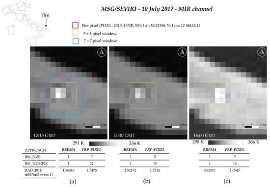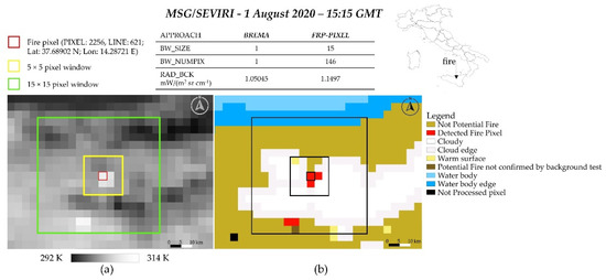 - Govaerts, Y.; Wooster, M.; Roberts, G.; Freeborn, P.; Xu, W.; He, J.; Lattanzio, A. Algorithm Theoretical Basis Document for MSG SEVIRI FIRE RADIATIVE POWER (FRP) Characterisation; FRP: LSA-502 (FRP-PIXEL), LSA-503 (FRP-GRID), LSA-550(FRP-PIXEL-R), LSA-551 (FRP-GRID-R); EUM/MET/SPE/06/0398; EUMESTAT: Darmstadt, Germany, 2015. [Google Scholar]