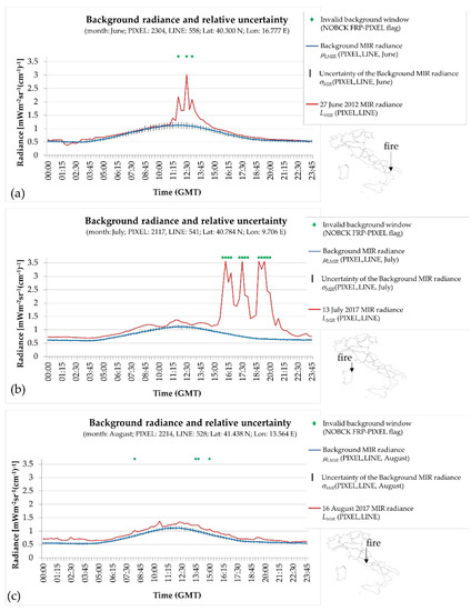 - Marchese, F.; Mazzeo, G.; Filizzola, C.; Coviello, I.; Falconieri, A.; Lacava, T.; Paciello, R.; Pergola, N.; Tramutoli, V. Issues and Possible Improvements in Winter Fires Detection by Satellite Radiances Analysis: Lesson Learned in Two Regions of Northern Italy. IEEE J. Sel. Top. Appl. Earth Obs. Remote Sens. 2017, 10, 3297–3313. [Google Scholar] [CrossRef]
