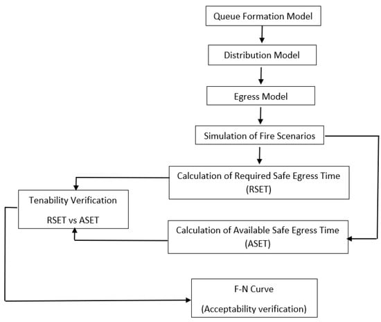 Subsidiary risk assessments shall be made to determine the probability and likely impact of hazards with a range of potential impacts []. Risks must be evaluated considering the tunnel geometry and its infrastructures, fire safety measures, as well as equipment and management procedures. In addition, they require the analysis of many complex factors and processes related to human behavior, such as pre-evacuation times, e.g., reluctance to leave the vehicle, interactions between occupants, interactions between occupants and smoke, etc. In this model, the risk assessment analysis is divided into quantitative consequence analysis and quantitative frequency analysis.