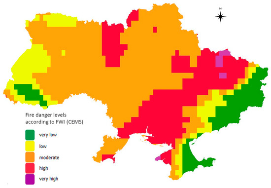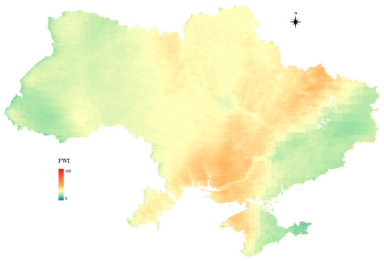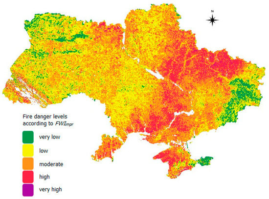 - Kussul, N.; Yailymov, B.; Shelestov, A.; Yailymova, H. Fire danger assessment based on the improved fire weather index. In Proceedings of the International Geoscience and Remote Sensing Symposium, Kuala Lumpur Convention Centre (KLCC), Kuala Lumpur, Malaysia, 17–22 July 2022; pp. 1584–1587. [Google Scholar] [CrossRef]