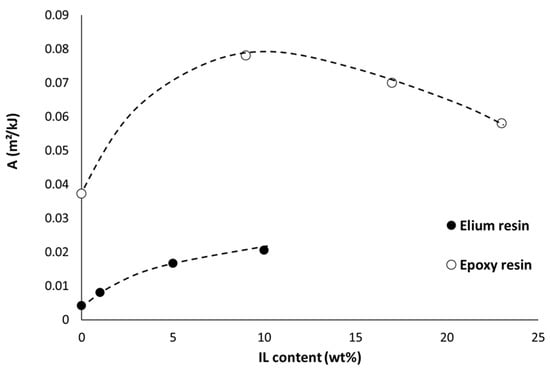 A value versus IL content in Elium and epoxy resins filled with IL169.