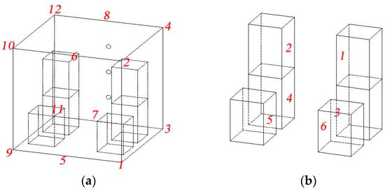 The liquid nitrogen injection hole with a diameter of 23 mm is located in the center of one side of the cubic container. A total of 12 4OXV oxygen sensors and 18 K-type thermocouples are placed inside the test container where eight concentration monitoring points are on the eight corners of the container and the other four are arranged on the four edges of the container. In addition, twelve temperature monitoring points are arranged at the same position as oxygen sensors, and the other six are placed to be close to the heating sheets on the six boxes. The arrangement of the monitoring points is shown in Figure 3.