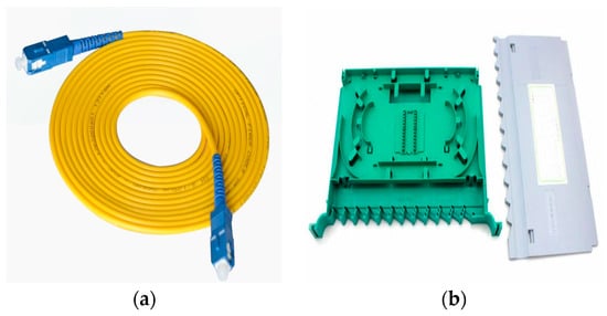 Combustible materials used in the optical fiber combustion test: (a) Optical fiber; (b) Integrated fiber tray.