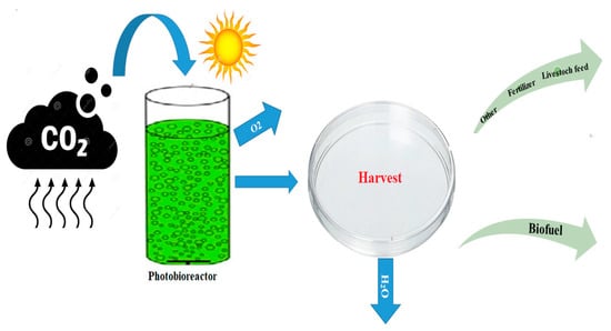 - Kassim, M.A.; Meng, T.K. Carbon Dioxide (CO2) Biofixation by Microalgae and Its Potential for Biorefinery and Biofuel Production. Sci. Total Environ. 2017, 584–585, 1121–1129. [Google Scholar] [CrossRef] [PubMed]