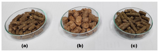 Pellet samples: (a) alfalfa, (b) straw, (c) hay.