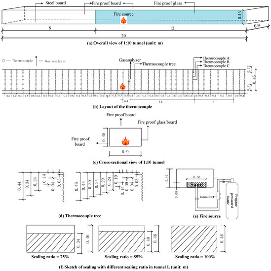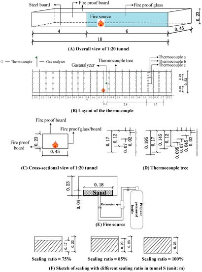 - Chen, C.-K.; Zhu, C.-X.; Liu, X.-Y.; Yu, N.-H. Experimental investigation on the effect of asymmetrical sealing on tunnel fire behavior. Int. J. Heat Mass Transf. 2016, 92, 55–65. [Google Scholar] [CrossRef]