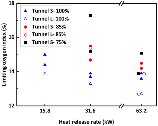 Limiting oxygen concentration at varying heat-release rates and scales.