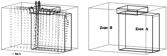 From the fire anatomy, the flow field of most of the compartmental fires can be divided into several regions [], i.e., fire plume region, flow entrainment region, and recirculating region. When studying the fire-induced flow field in more detail, the flow regions are not limited to these three areas. However, these three regions are considered more representative and can be described successfully by the available turbulence models in the present paper.