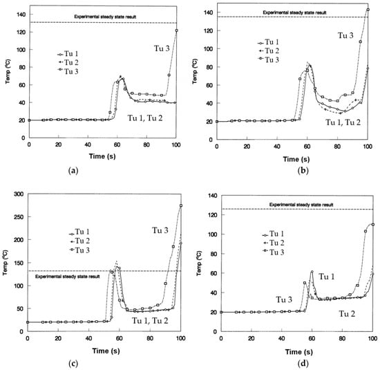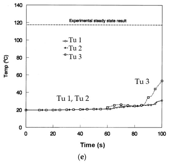 From Tu 1 and Tu 3, the simulated data were 31 °C and 53.2 °C, respectively at Pt 5. By comparing with the measured temperature at Pt 5, the deviations were 73.6% for Tu 1 and 53.2% for Tu 3. Although the results by both models had a rather great discrepancy with the experimental results, it was clear that Tu 3 provided better predictions than Tu 1 with up to about a 20.4% improvement.
