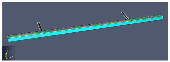 BIM models can convey important information to fire simulation software. Therefore, an underground interchange model was built in the MicroStation V8i software of Bentley Company. This model adopted a typical longitudinal exhaust underground interchange, and the ventilation air flowed along the underground interchange. It was a full-jet underground interchange, and its ventilation was completed by the boost of the jet fan group. The cross section was uniformly set as a rectangle of 10 m × 6 m, and the length was 434 m based on the actual situation. Then, the BIM file was directly imported into the fire simulation software that supports the file format, which can save the development process of the software itself and is easy to operate.