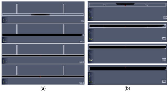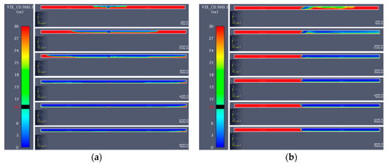 Changes in the longitudinal center section of visibility: (a) 0.5 m/s; (b) 3.6 m/s.
