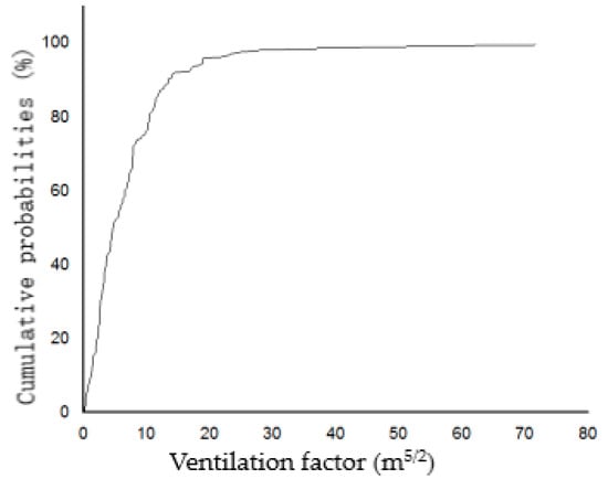 Figure 6 shows the CDF of the ventilation factor for the investigated high-rise residential buildings, where the values corresponding to cumulative probabilities of 50%, 80%, and 90% were 4.71 m