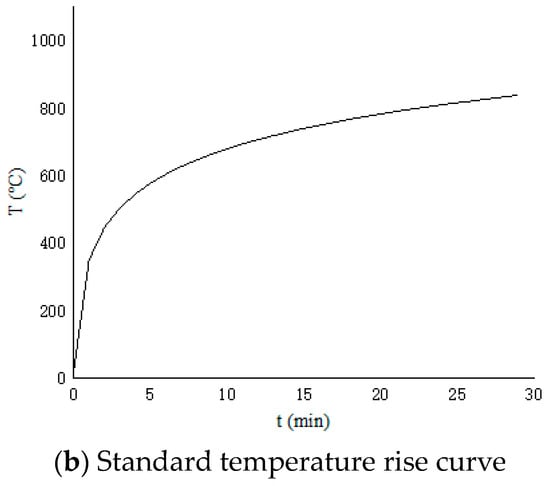 The EUROCODE model, developed by the European Committee for Standardization based on the temperature rise model built by Magnusson and Thelandersson, gives a room fire temperature–time curve according to fire load density, opening factor, and wall materials’ thermophysical properties. The model divides fire development into two stages, i.e., the temperature rise stage and the temperature decline stage. They can be calculated as follows: