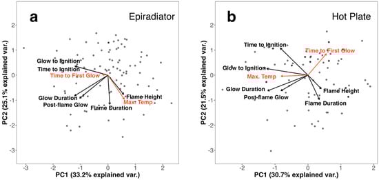 | Time to Ignition | −0.44 | 0.59 | 0.52 | −0.41 | 0.81 | −0.08 |