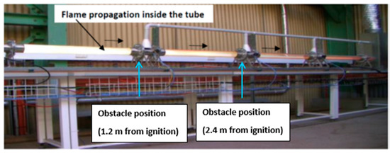 While some studies have sought to better understand unanticipated fire and the explosion of methane–air mixtures, there is still a knowledge gap concerning the relationship between these variables and their impact on the resulting adverse incidents [8,9]. In particular, the flame propagation mechanism in the real-world geometries found in the extractive and process industries such as pipelines, tunnels, chimneys, and other enclosed and semi-enclosed structures is not well understood, and further research is required to develop the enhanced fire and explosion mitigation technologies for those industries [10,11,12].
