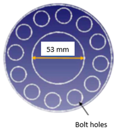With the aim of investigating the effect of obstacles, orifice plates of various blockage ratios were used at various locations along the length of the flame propagation tube. Multiple, single and no obstacle scenarios were employed in the experimental investigations. The single obstacle with 30%, 50% or 70% of the glass tube cross-sectional area was positioned at a distance of 1.2 m and 2.4 m from the ignition source. Also, two obstacles were positioned at 1.2 and 2.4 m away from the ignition source simultaneously. Figure 3 shows a schematic of a circular hollow obstacle with a 50% blockage ratio. The obstacles were installed between the flanges using 12 sealed bolts, as shown in Figure 2.