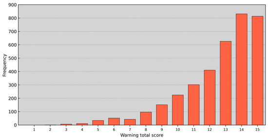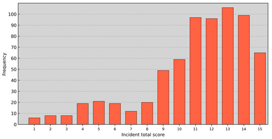 Frequency distributions of each total score for incidents exceeding statewide ROS breakpoint; all states 1999–2014.