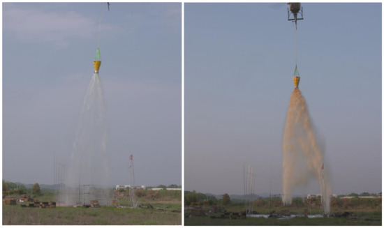 3.2. Tests on Flame-Retardant Water Agents When Sprayed from a Helicopter