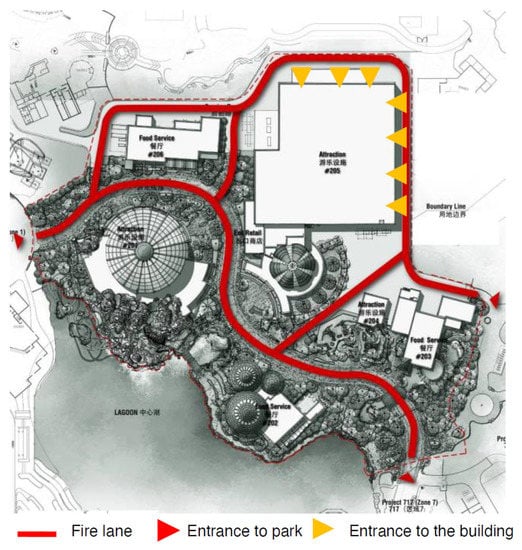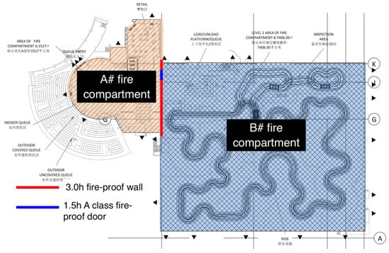As is known to all, indoor public amenities, as a new entertainment venue, can meet the growing demands of recreation and leisure. However, due to the growing density of visitors, in some cases, visitors’ activities are restrained, and related fire safety issues are prominent. A case in point is the potential fire risk of large-scale entertainment parks with indoor track riding projects. It is different from the public entertainment places which have been defined by the code for fire-protection design of buildings [] because the public amenities in the code mainly refer to the unrestricted entertainment activities of visitors, such as electronic entertainment halls, bowling venues and other entertainment projects, while in indoor riding activities tourists need to be fixed on the seats and move along the track.