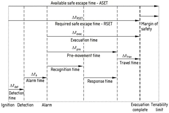 - The time for personnel to complete evacuation, known as the required safe evacuation time (denoted as RSET).