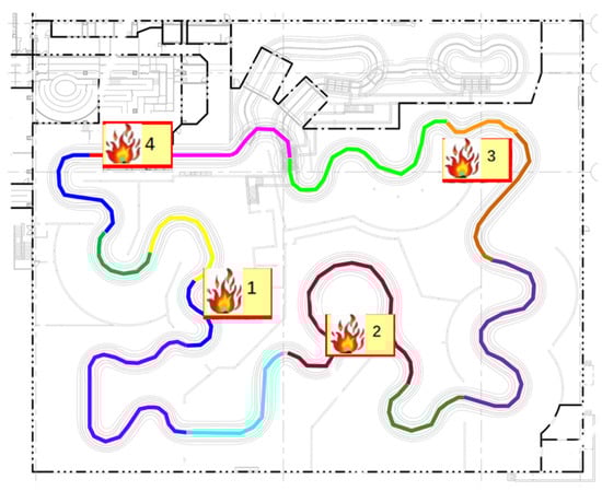 However, previous research about public amenities with restrained personnel activities is still small in number. Zheng [] and Zhang [] proposed some fire safety measures and demonstrated the PBFD of a large indoor theme park in response to the difficulties based on existing standards. A fire protection design plan was proposed from the aspects of fire protection general layout, combustible control, fire separation measures, evacuation and smoke exhaust design. Zhao [] introduced the PBFD of a large indoor amusement park project, as well as the basic preparation work and the construction scheme.