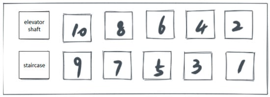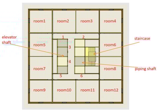 22], further verification is necessary to describe this non-homogeneous physical state process using a single node. Non-homogeneous physical state processes can cause confusion and inaccurate results in graph-based simulations. Therefore, this study carefully represents horizontally and vertically connected passages into single and multiple nodes for comparison. In the case of multiple nodes, passages are divided into several small nodes based on the geometric dimensions of the rooms and floors, with the number of nodes depending on the passage length. These nodes generally have different physical state attribute values in actual physical processes, as shown in