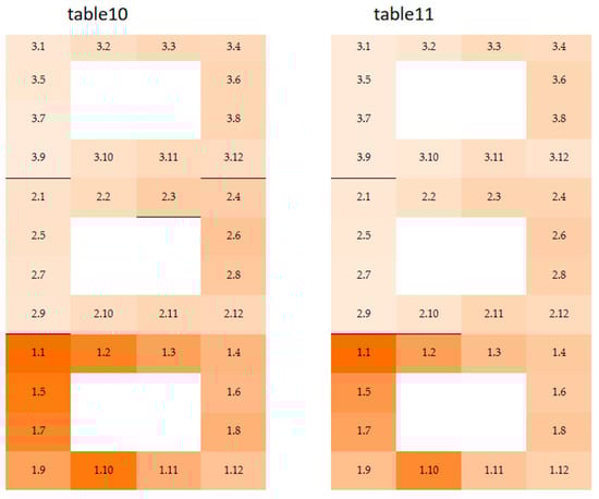Table 2 and subsequent tables, the darker the color, the earlier the smoke arrives. According to the simulation results in