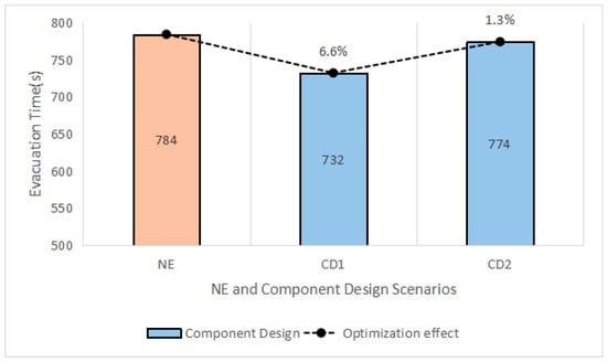 The evacuation times of NE, CD1, and CD2 scenarios.