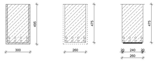 - Based on Figure 4, it can be concluded that the amount of concrete covering can be significantly reduced. It is likely that reinforcement with concrete next to it would be more resistant in the long term. However, in the case of this research, the aim of the authors was to compare the behaviors of three different materials with the same reinforcement form.