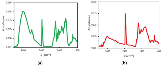 FTIR spectra of unburned bark (a; green line) and bark PyOM (b; red line) from a Scots pine forest. Note. k—wavenumber.