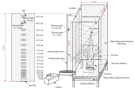 - Yu, H.; Guo, S.; Peng, M.; Li, Q.; Ruan, J.; Wan, W.; Chen, C. Study on the Influence of Air-Inlet Width on Fire Whirls Combustion Characteristic. Procedia Eng. 2013, 62, 813–820. [Google Scholar] [CrossRef][Green Version]
