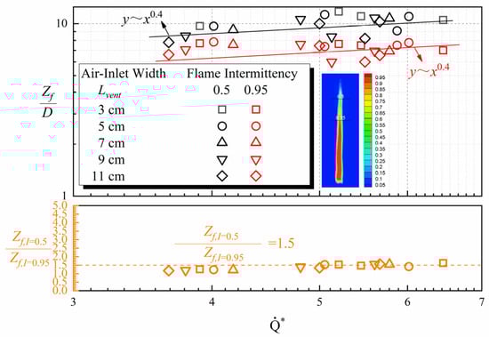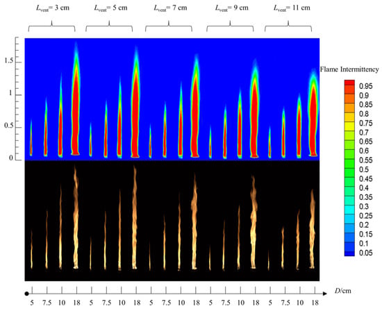 - Considering different flame height ratios, the maximum-to-average flame height ratio is approximately 1.35 (), and the average-to-continuous flame height ratio rounds to 1.5 (). Both of these ratios remain unaffected by factors such as the air-inlet width, fuel pan diameter, ambient temperature, and the fire whirl’s heat release rate.