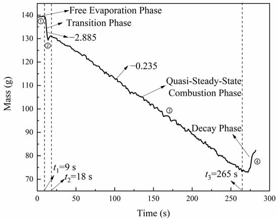 - The entire combustion process of a fire whirl can be divided into four phases: free evaporation, transition, quasi-steady-state combustion, and decay. As the air-inlet width incrementally expands, the fire whirl’s burning rate in the quasi-steady-state combustion stage demonstrates an initial increase, followed by a decrease, peaking at an air-inlet width of 7 cm;